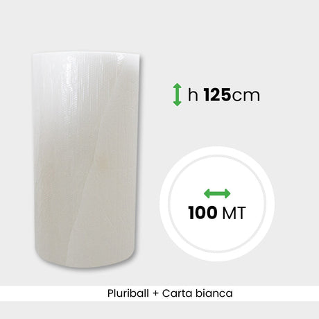 Pluriball accoppiato con Carta Bianca 140 gr H 125 cm